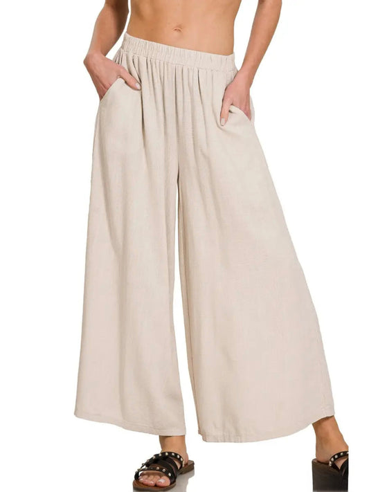 High Rise Crop Wide Leg Pants in White