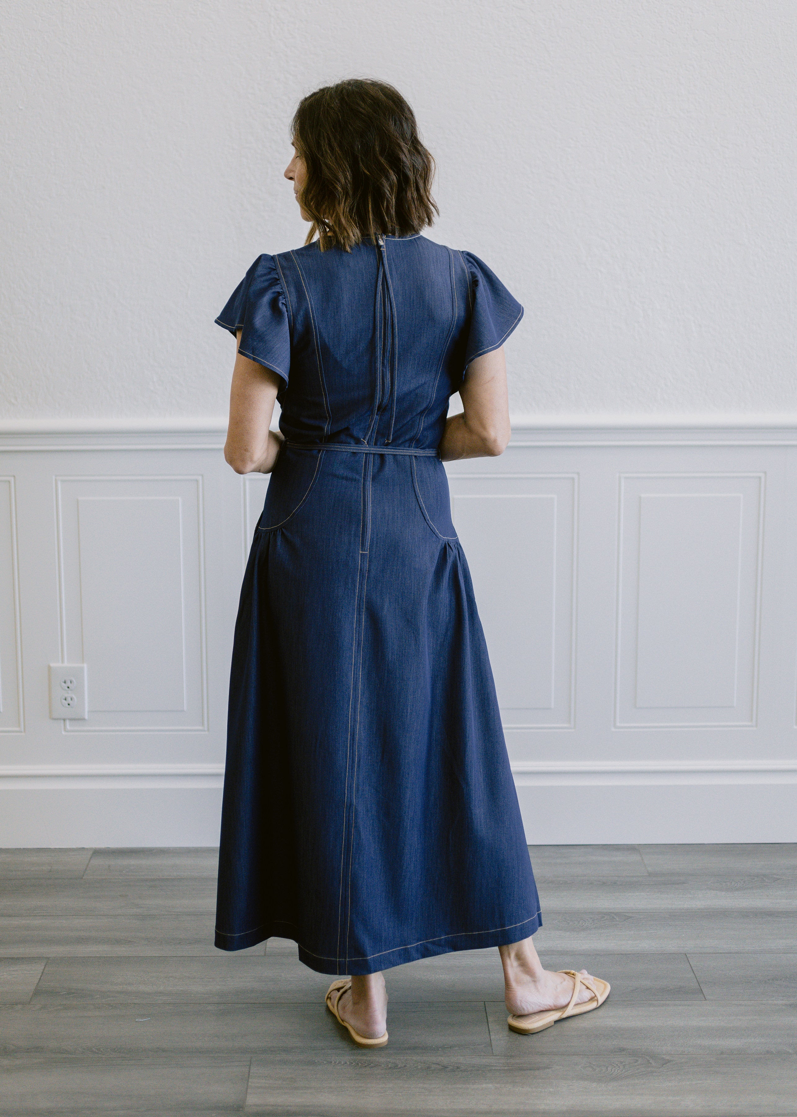 Flutter Sleeve Waist Tie Dress