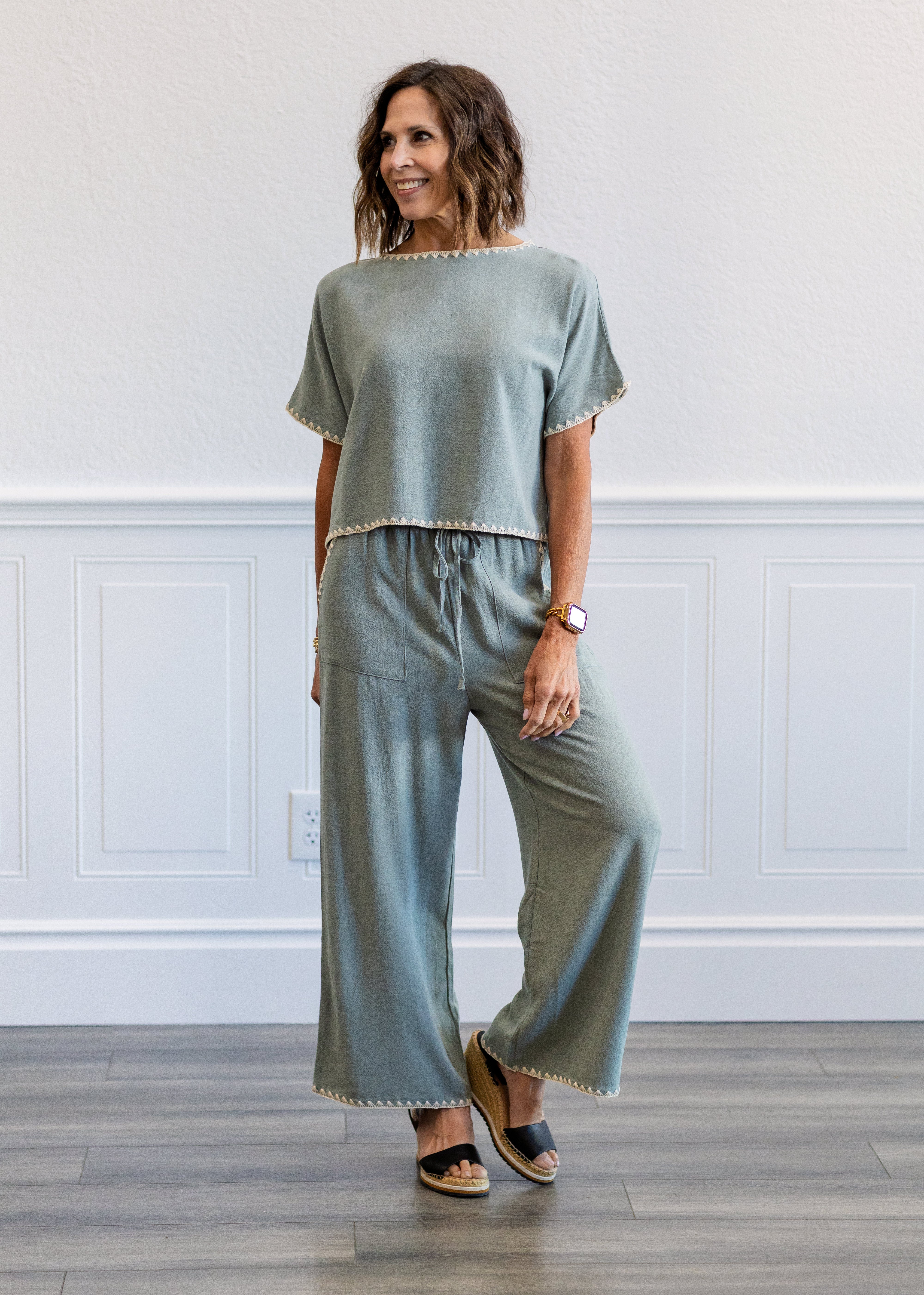 Effortless and versatile, these pants pair beautifully with fitted tanks, breezy blouses, or lightweight knits for a look that feels polished yet relaxed. Whether styled for casual days, travel, or warm-weather outings, they offer a timeless boutique feel with ease and comfort.