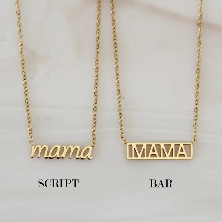 Delicate, meaningful, and designed for everyday wear, the Mama Necklace is a timeless piece that celebrates motherhood with a soft, sentimental touch. Available in your choice of a dainty mama script or signature bar style, this necklace adds just the right amount of shine while keeping a clean, minimal look that layers beautifully or stands on its own.