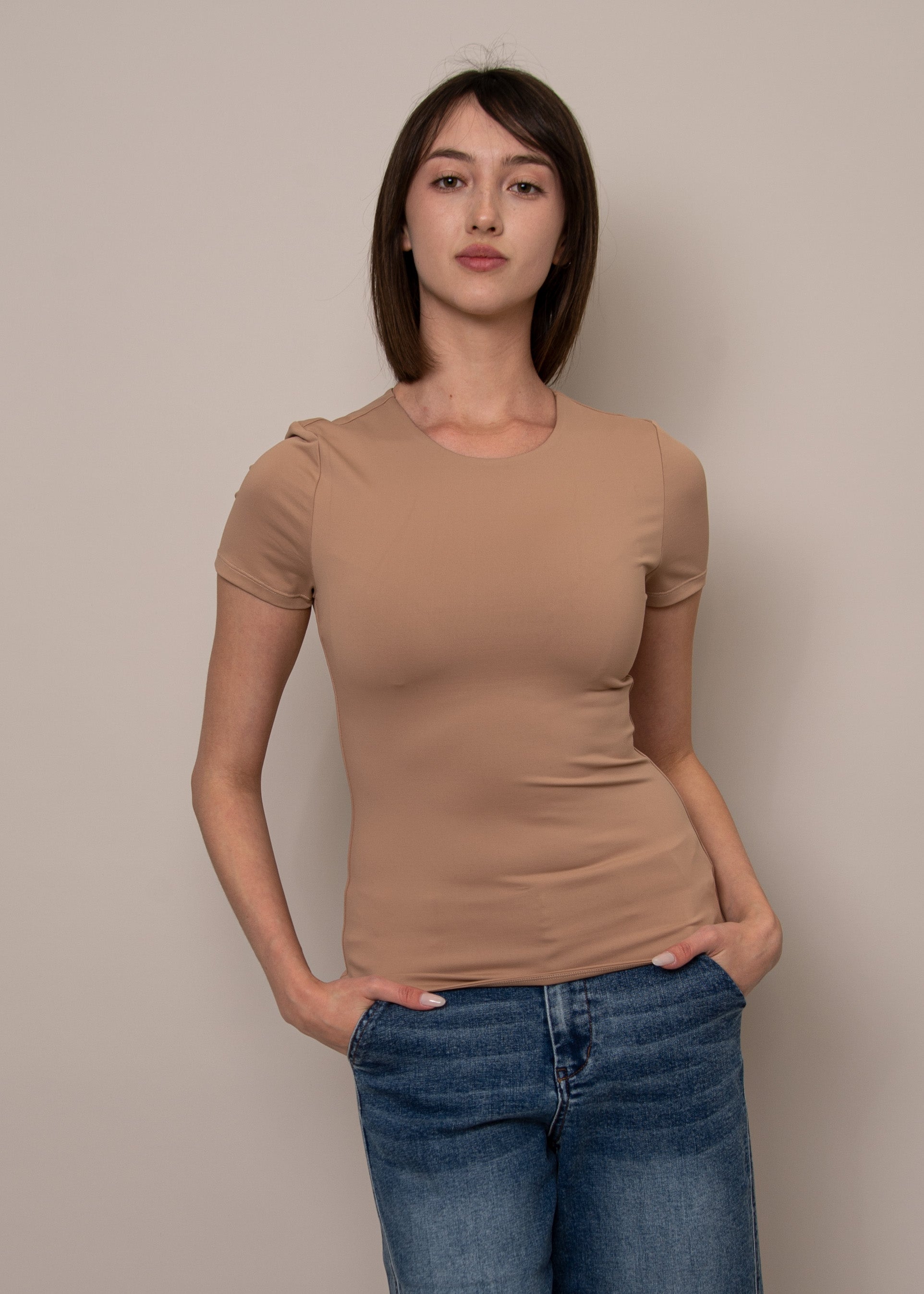 The Roxi Tee is the kind of polished basic that instantly elevates your everyday wardrobe. Designed with a longer length, double-layer fabric, and a high crew neckline, this top offers a smooth, structured fit with the luxe second-skin feel you will want to wear on repeat. The ultra-flattering fabric creates a sleek, smoothing effect while still feeling soft, comfortable, and easy to move in.