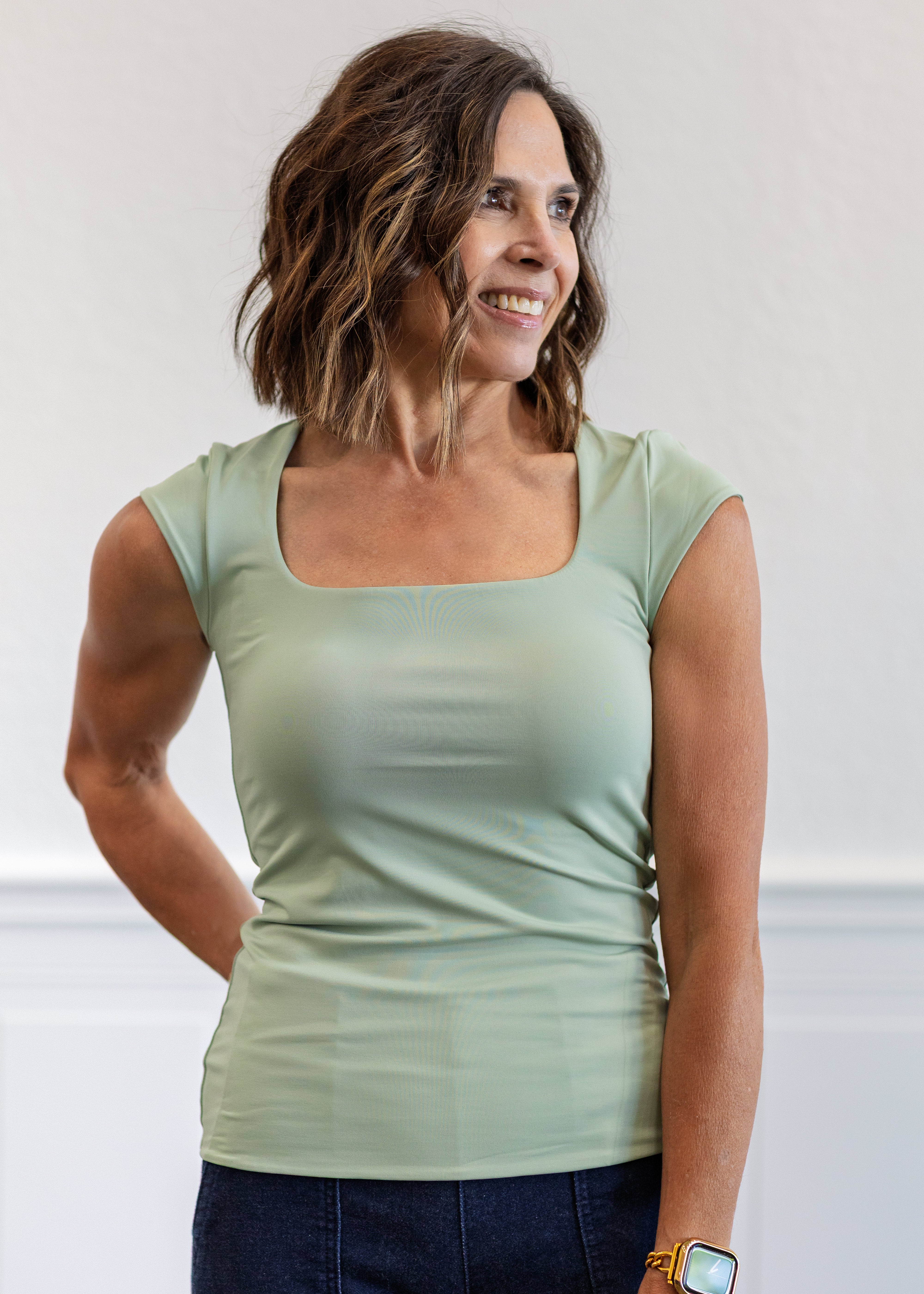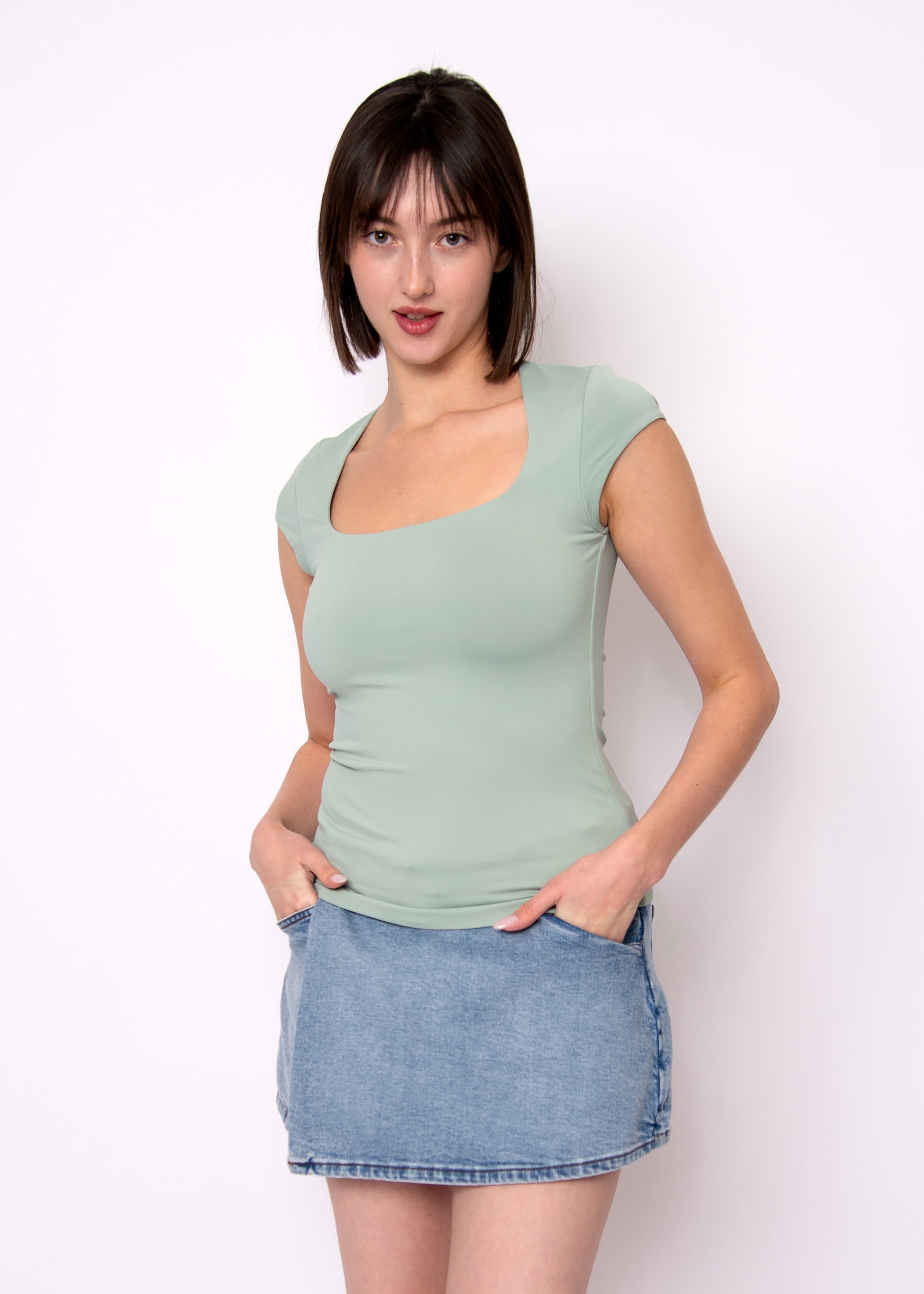 Tiara Signature Skin Cap Sleeve Top in Ivy Green