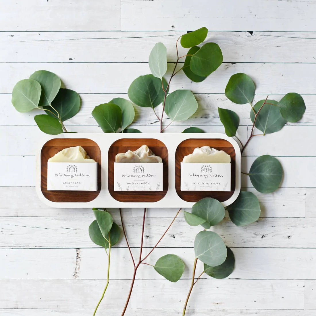 Offered in an attractive holster box, your customers can engage with the product without touching the soap. The box also tells a story, letting customers know that our soap is handcrafted and is free of palm oil, parabens, and sulfates.