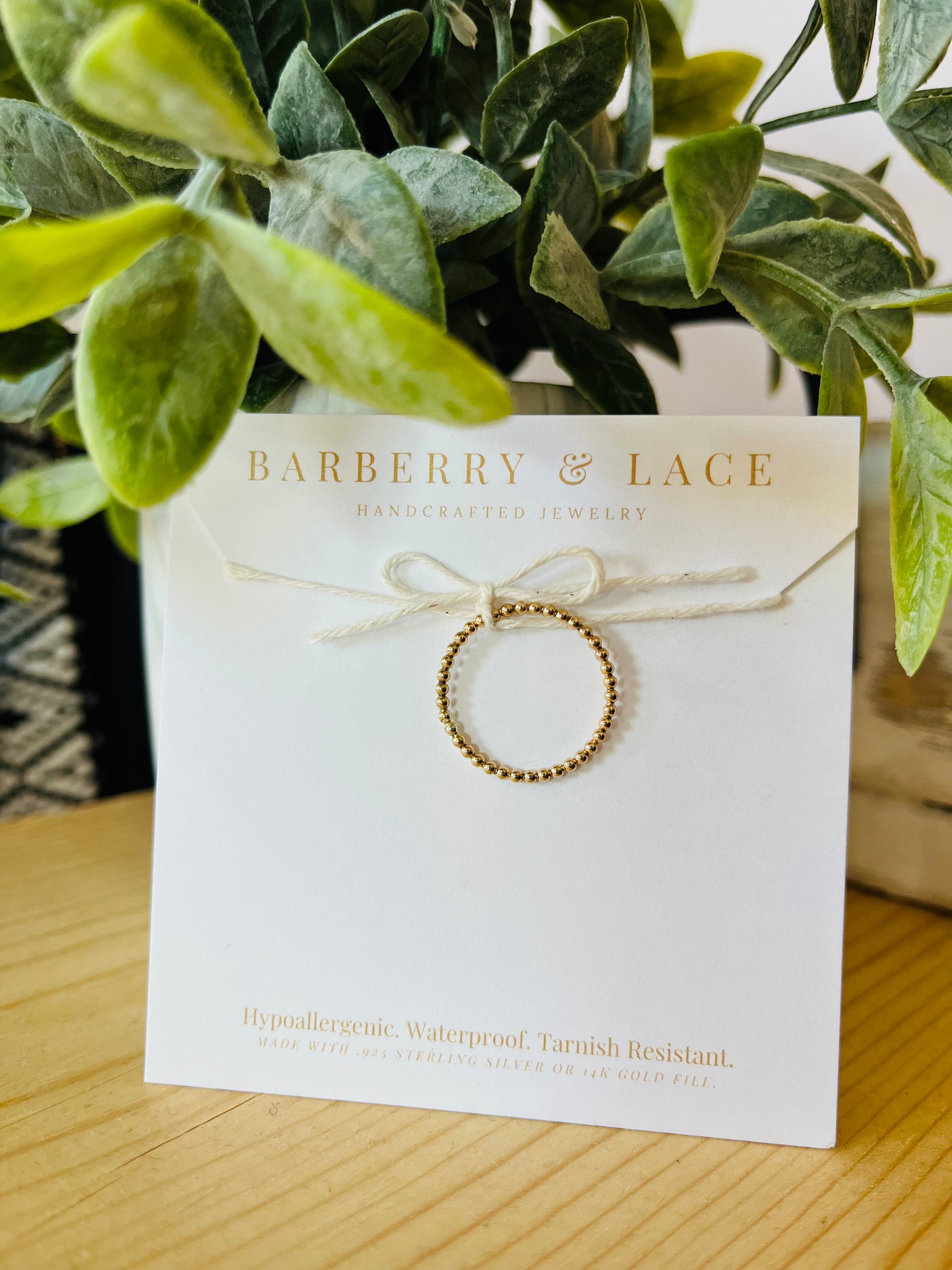 Our Beaded Stacking Ring will give your style a touch of timeless class! Made from 14k gold fill, this hypoallergenic, waterproof piece won't tarnish with time - no plating, just sparkle that will last! Now you can stack up to style - and stack up to stay! Includes one ring and comes with gift-ready packaging!
