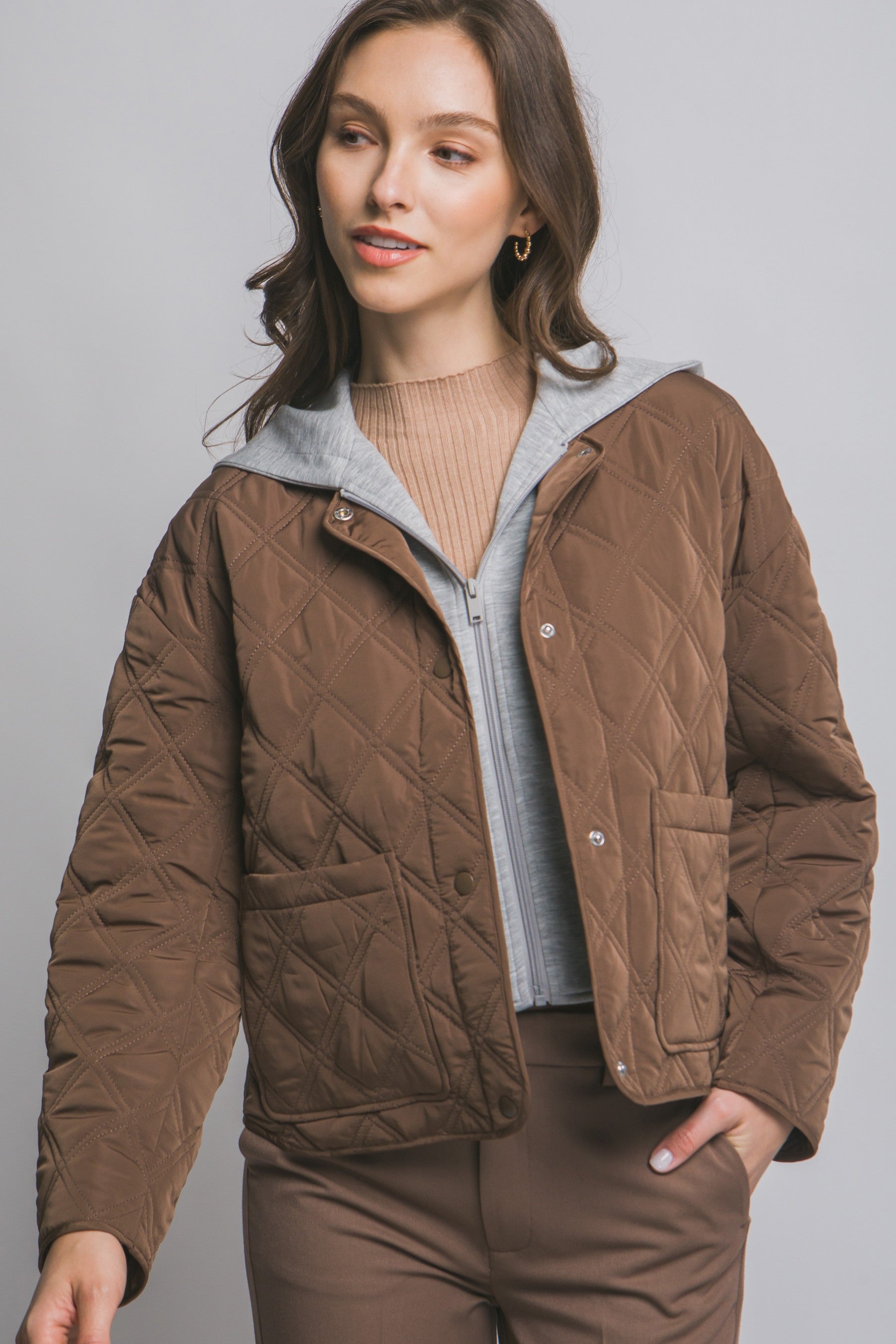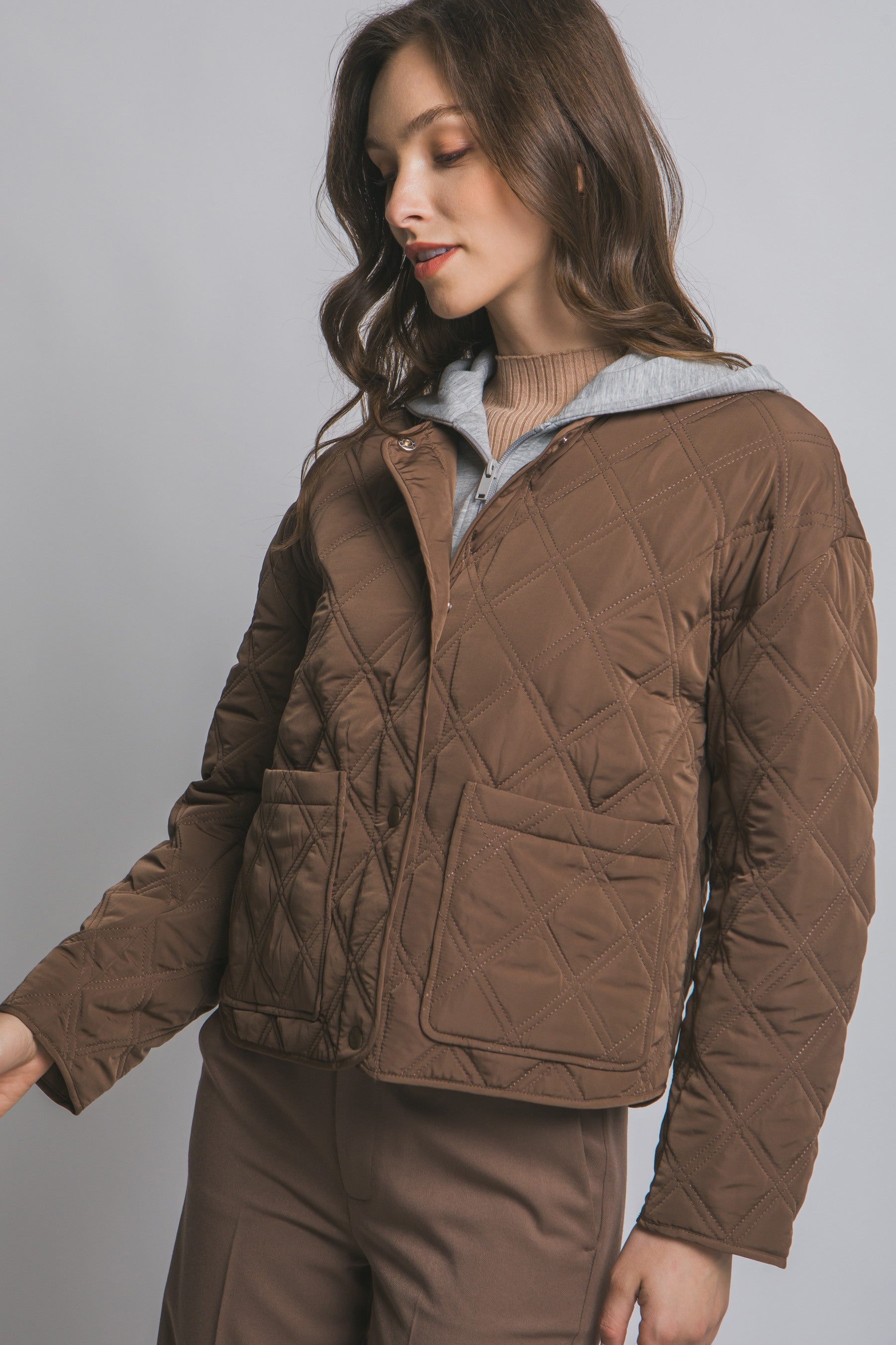 The Contrast Puffer Jacket combines refined style with practical functionality. This sophisticated piece features a distinctive hooded design with striking contrast detailing that elevates any casual wardrobe. The dual closure system—combining a smooth zip with snap button accents—offers versatile styling options, while two generously sized front flap pockets provide convenient storage. Perfect for layering or wearing as a standalone statement piece, this jacket delivers both warmth and contemporary elegance for the modern wearer.