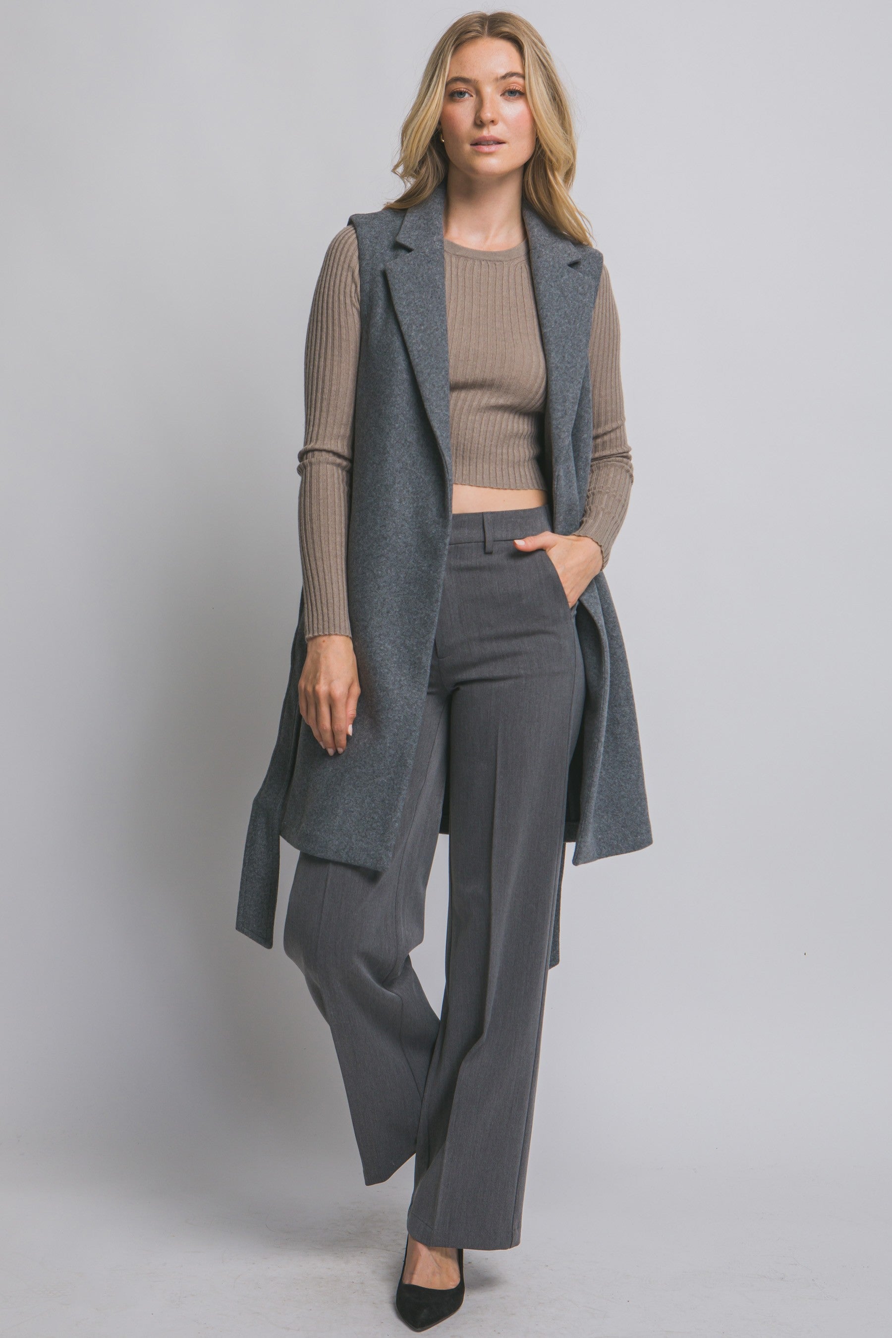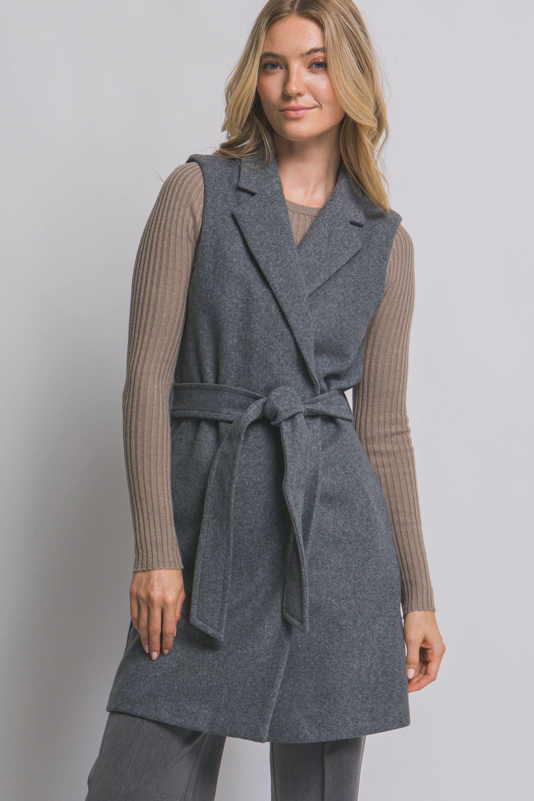 Elevate your everyday style with this versatile piece featuring a classic lapel collar that frames your face beautifully. Practical side pockets keep your essentials within reach, while the self-tie waist allows you to customize the fit to your body—cinching for definition or leaving relaxed for comfort. Whether you're dressing up or down, this thoughtfully designed garment adapts to your lifestyle with effortless sophistication.