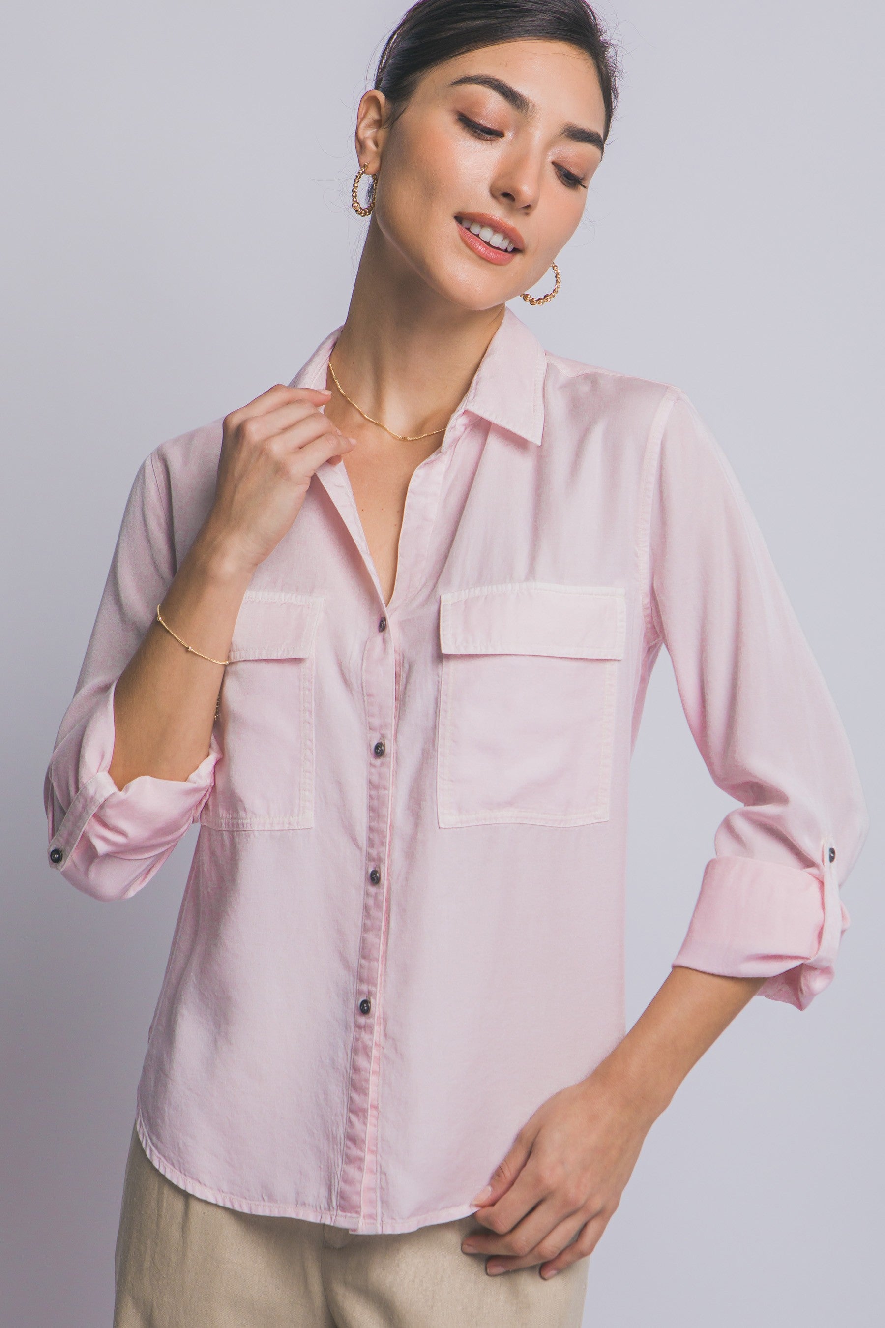 Effortless style meets comfort in this versatile long sleeve Tencel shirt. Designed with a relaxed regular fit and charming collared neckline, it features practical fold-over chest pockets and a curved hemline that flatters every silhouette. Love the flexibility? Roll up the sleeves for a casual, breezy vibe whenever the mood strikes. Crafted from breathable Tencel fabric, this wardrobe essential transitions seamlessly from office to weekend adventures.