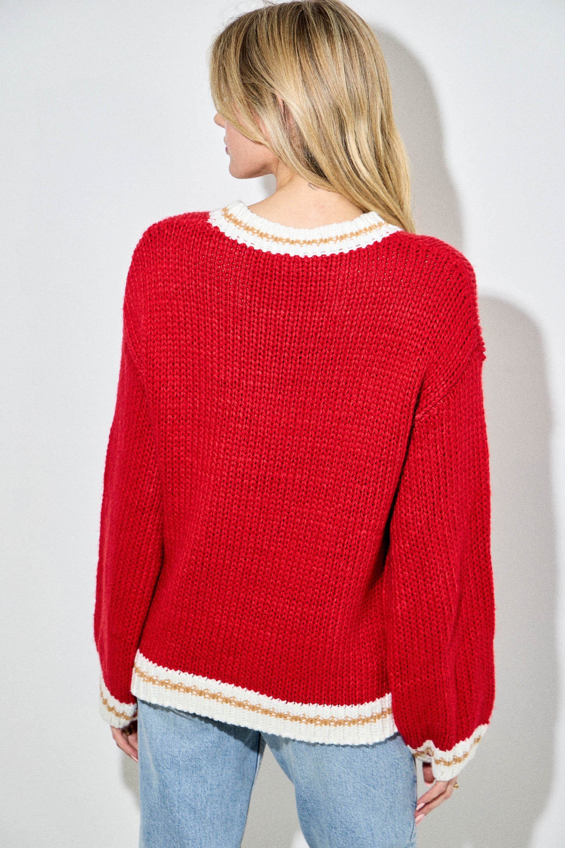 Celebrate the season in cozy style with this knitted Christmas sweater featuring a classic crew neckline and a festive "MERRY" graphic. Its soft, warm fabric ensures comfort during chilly holiday gatherings, while the cheerful design adds the perfect touch of holiday spirit to your wardrobe. Perfect for spreading joy at any festive occasion.