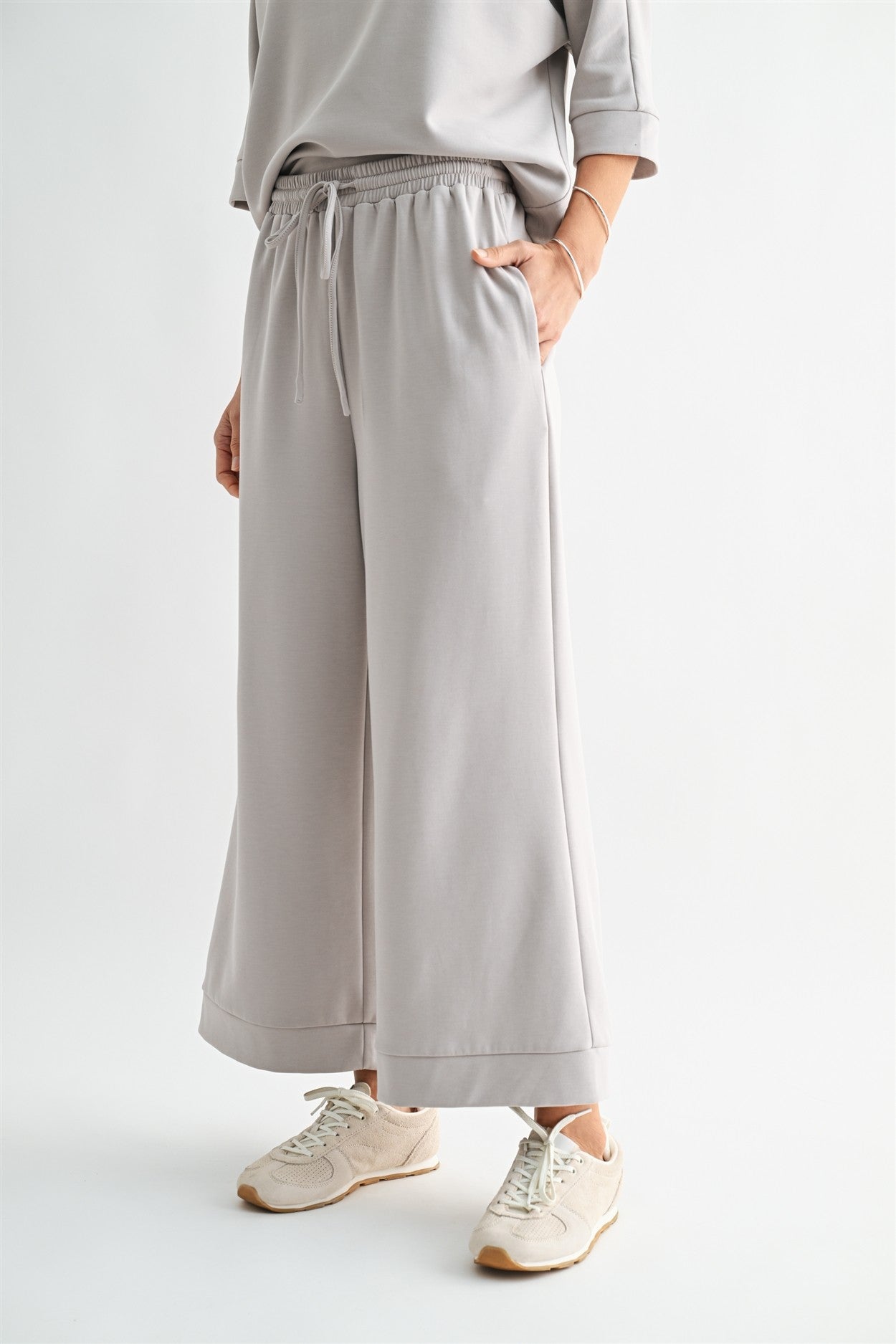 These Scuba Pants in Charcoal combine comfort and style effortlessly. Featuring an elastic waist and front tie, they offer a customizable fit that adapts to your shape. The wide-leg design provides freedom of movement and a modern silhouette, perfect for both casual and dressier occasions. Elevate your wardrobe with these versatile pants that balance ease with elegance. Paired with