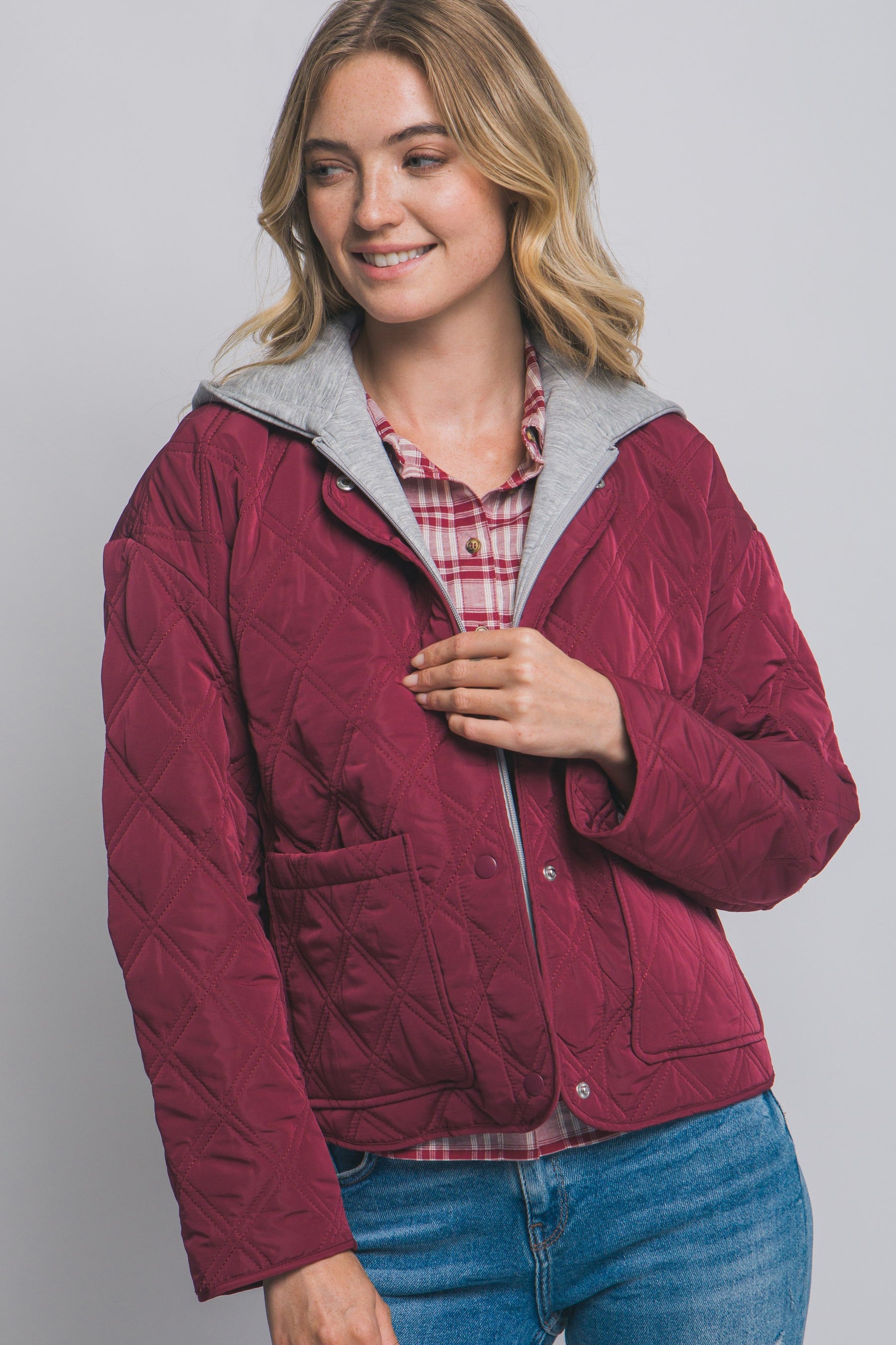 The Contrast Puffer Jacket combines refined style with practical functionality. This sophisticated piece features a distinctive hooded design with striking contrast detailing that elevates any casual wardrobe. The dual closure system—combining a smooth zip with snap button accents—offers versatile styling options, while two generously sized front flap pockets provide convenient storage. Perfect for layering or wearing as a standalone statement piece, this jacket delivers both warmth and contemporary elegance for the modern wearer.