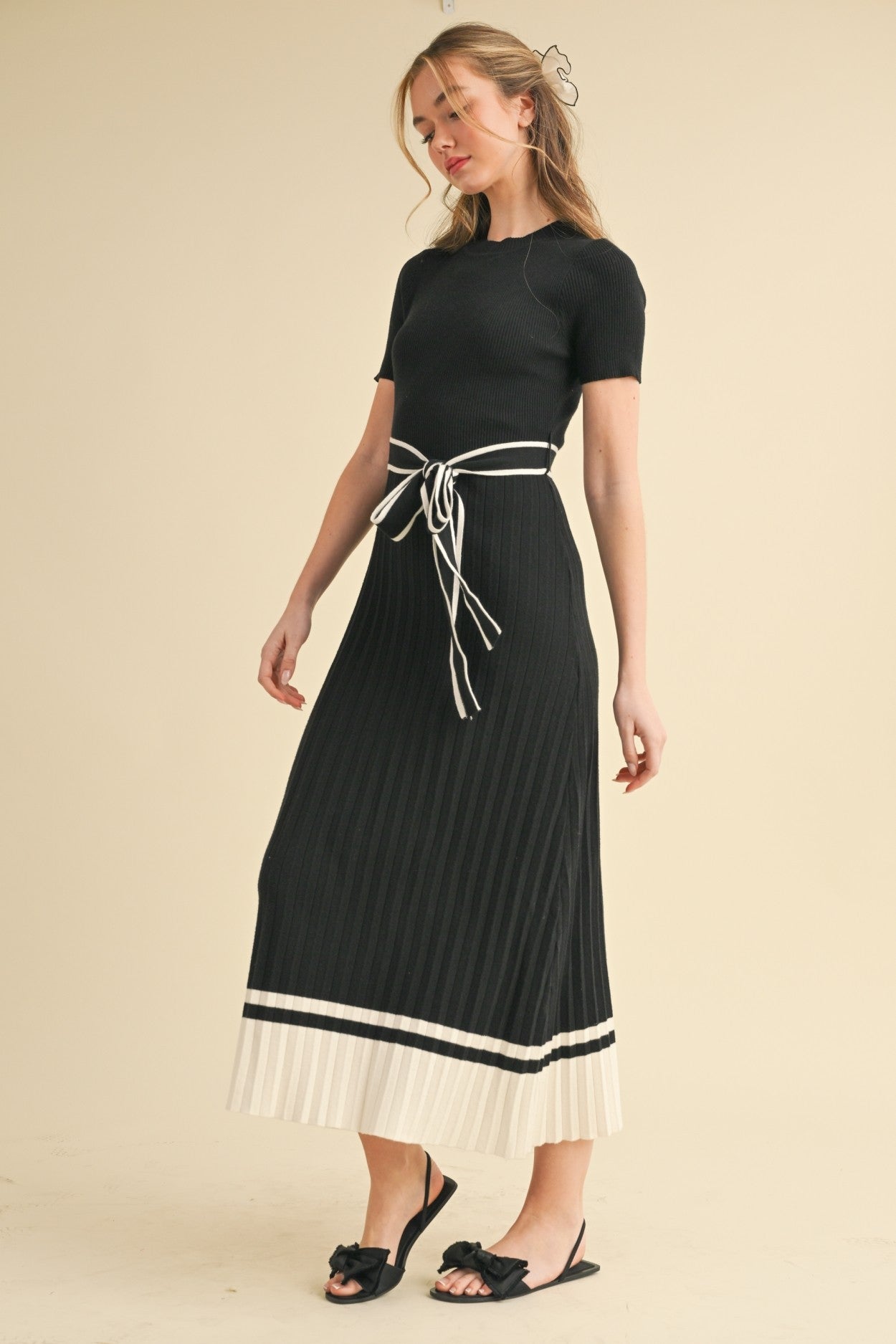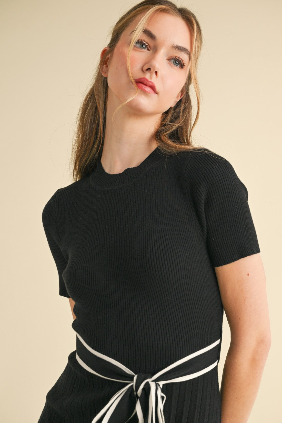 The Ellen Dress in Black combines understated sophistication with everyday wearability. This ribbed knit midi dress features a flattering silhouette that transitions seamlessly from casual brunches to evening events. The textured knit fabric drapes beautifully while maintaining its shape, offering both comfort and polish. Whether styled with sneakers for a relaxed weekend look or dressed up with heels for a night out, this timeless piece becomes the foundation of a versatile wardrobe. Effortless elegance has never been easier to achieve.