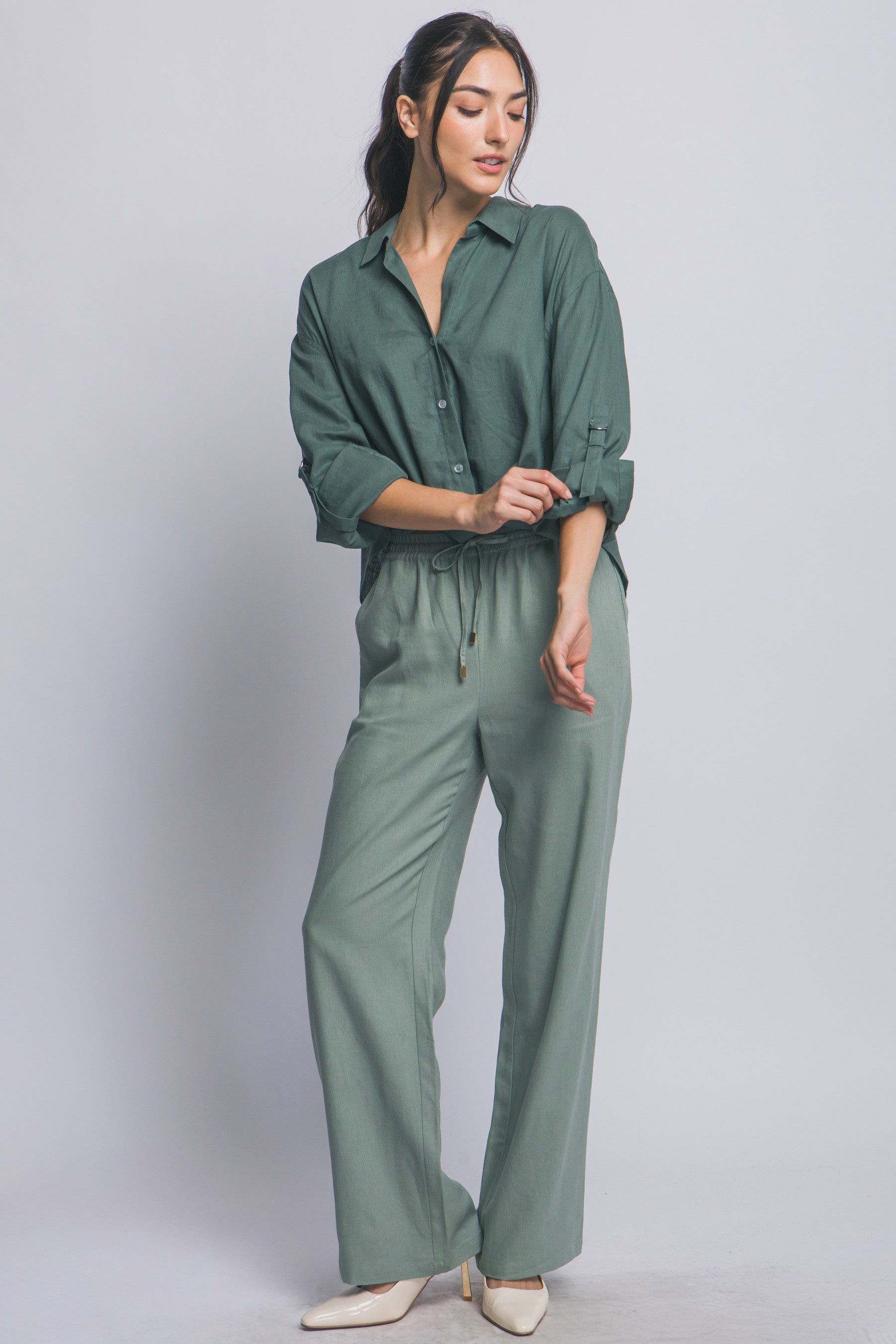 Elevate your everyday wardrobe with this timeless button-up shirt that seamlessly blends classic sophistication with modern practicality. Featuring a refined collar and adjustable sleeve tabs, you can customize the fit to suit your style and comfort. The distinctive twisted hem detail adds an unexpected touch of elegance, setting this piece apart from standard basics. Perfect for layering, dressing up, or wearing solo, this versatile shirt transitions effortlessly from office to weekend. Invest in quality craftsmanship that works as hard as you do.