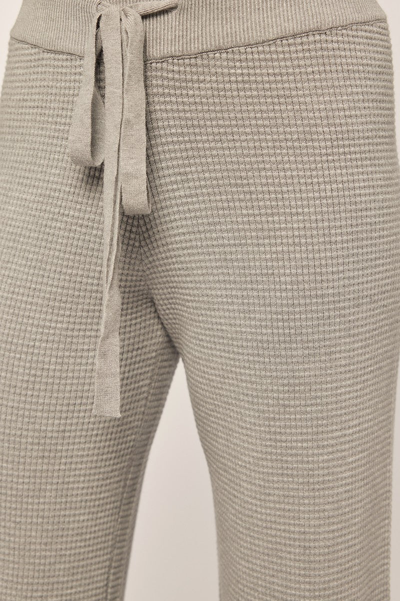 Unwind in style with our Waffle Textured Drawstring Pants. The relaxed fit and soft knit texture provide ultimate comfort while the wide length and drawstring add a touch of casual elegance. Perfect for lounging or running errands, these pants are a must-have addition to any wardrobe.