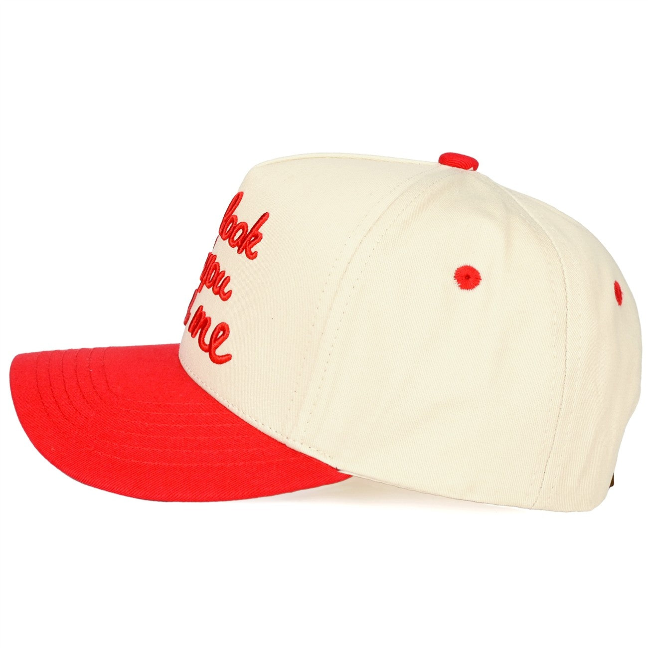 2 tone trucker hat with "You look like you love me" embroidered on the front. It's the perfect gift for a loved one.